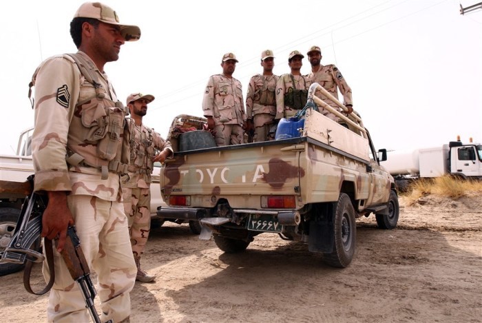 epa03428124 Iranian border guards are seen at a drug trafficking patrol post in Milak at the Iran-Afghanistan border line in the south-eastern province of Sistan-Beluchistan, Iran, 10 October 2012. The guards at the Afghan border confiscate an annual average of 200 tons of drug valued at almost 250 billion dollars on international markets, which would represent nearly half the total 500-billion-dollar annual global drug trade. About 3,700 border guards have been killed in counter narcotics operations and tens of thousands injured over the past 30 years. EPA/ABEDIN TAHERKENAREH